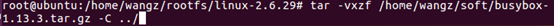 busybox(称为嵌入式开发中的瑞士军刀)是一个工具集(例如我们常用ls,pwd命令,及vi或vim工具),对于这些常用的命令和工具,我们没有必要重新去开发,直接利用busybox进行移植即可。这里我用的是busybox-1.13.3,解压到rootfs目录下:![]()