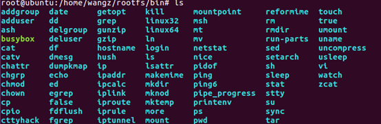 编译完成后,会发现/home/wangz/rootfs/bin/bin多了很多指令工具: