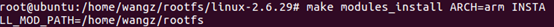 make modules_install ARCH=arm INSTALL_MOD_PATH=/home/wangz/rootfs