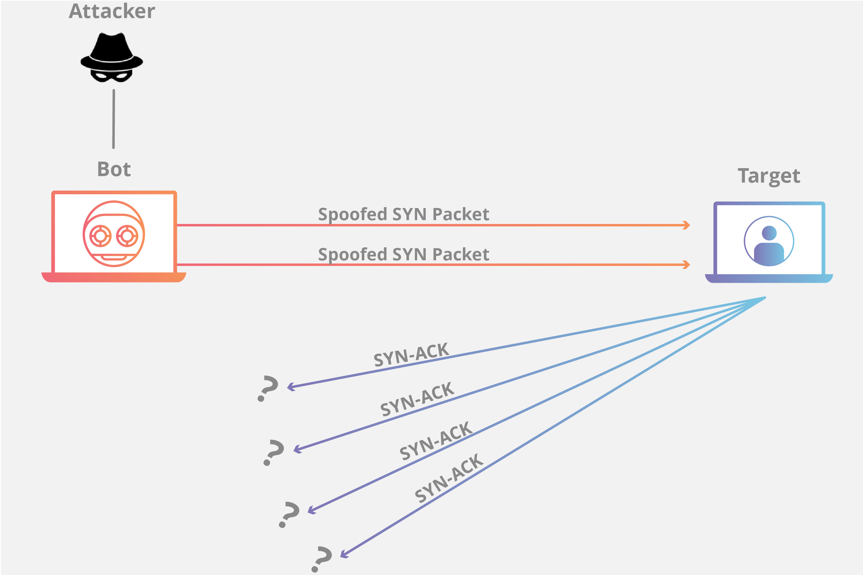 此类攻击利用 TCP 握手(两台计算机发起网络连接时要经过的一系列通信),通过向目标发送大量带有伪造源 IP 地址的 TCP“初始连接请求”SYN 数据包来实现。