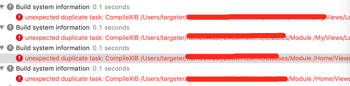 Xcode -- unexpected duplicate task: CompileXIB xxx