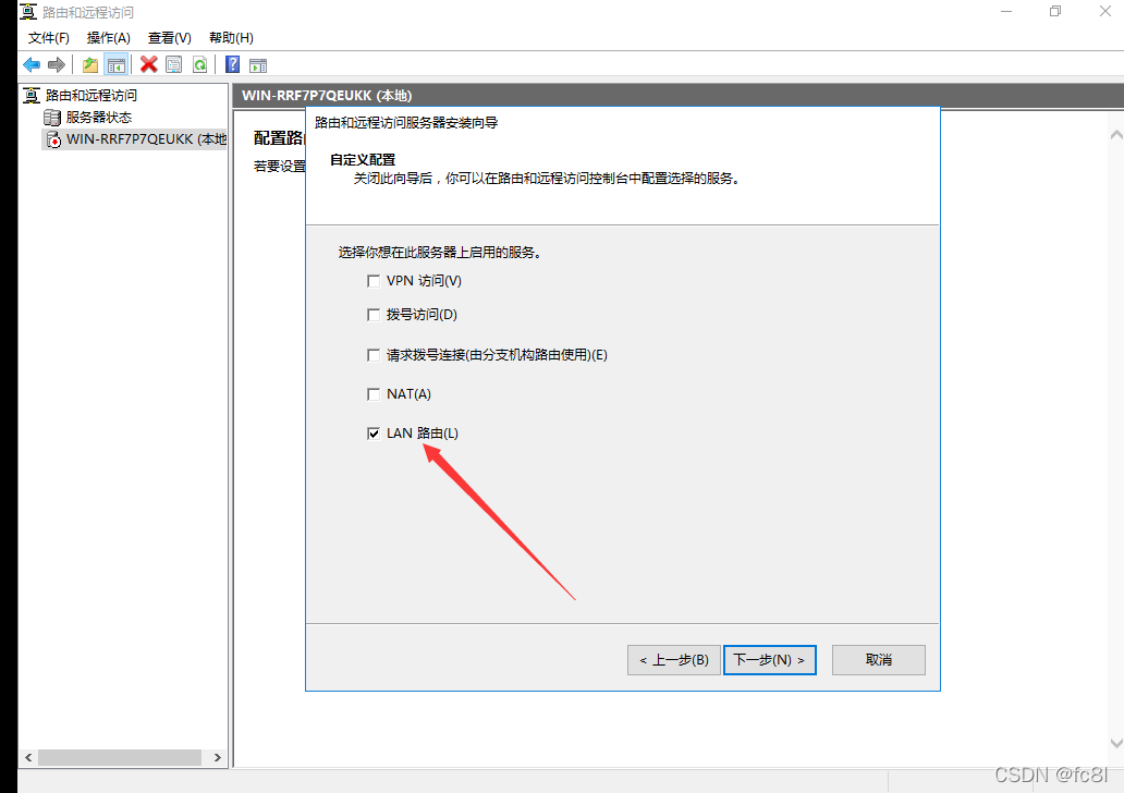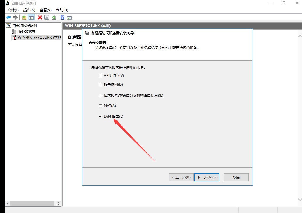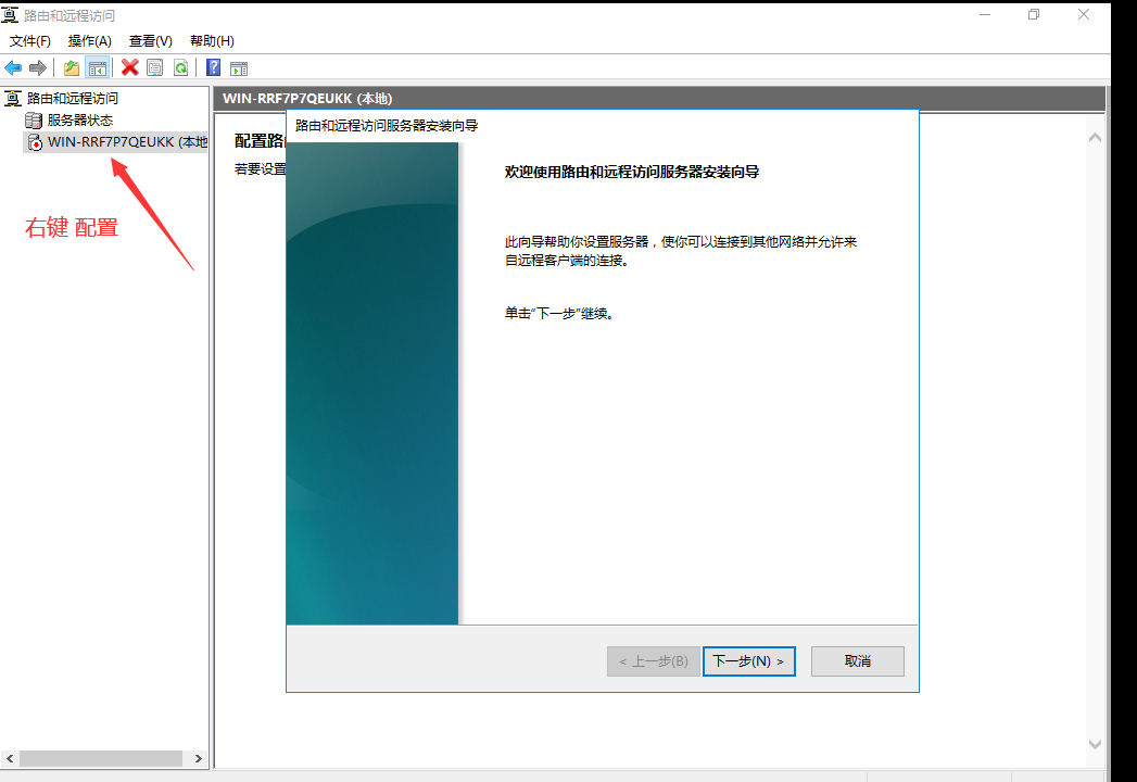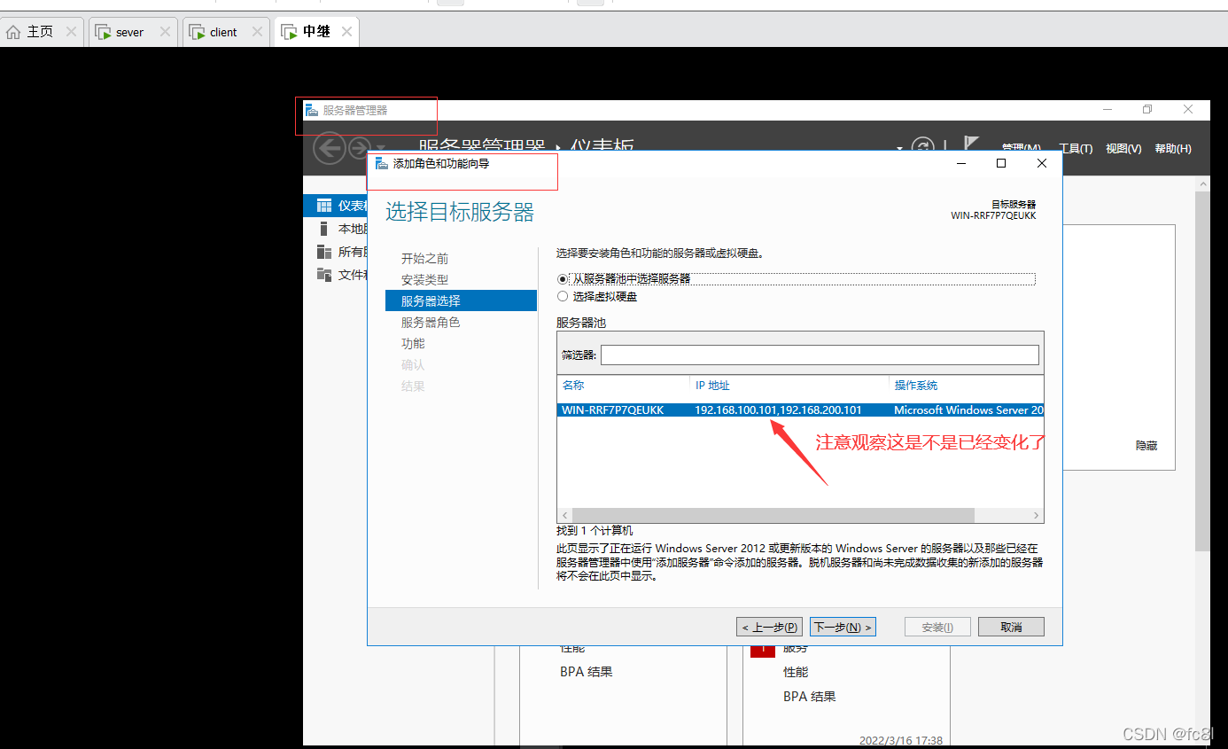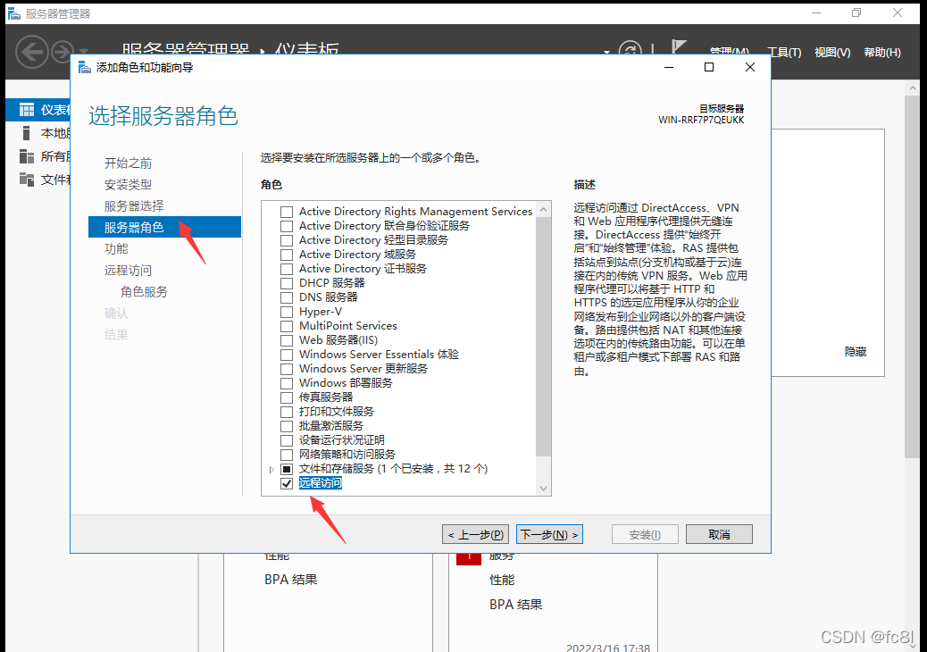 在中继的服务器管理器中------添加角色和功能---如果IP地址没变重启一下----下一步----在服务器角色里去安装一个远程访问的角色