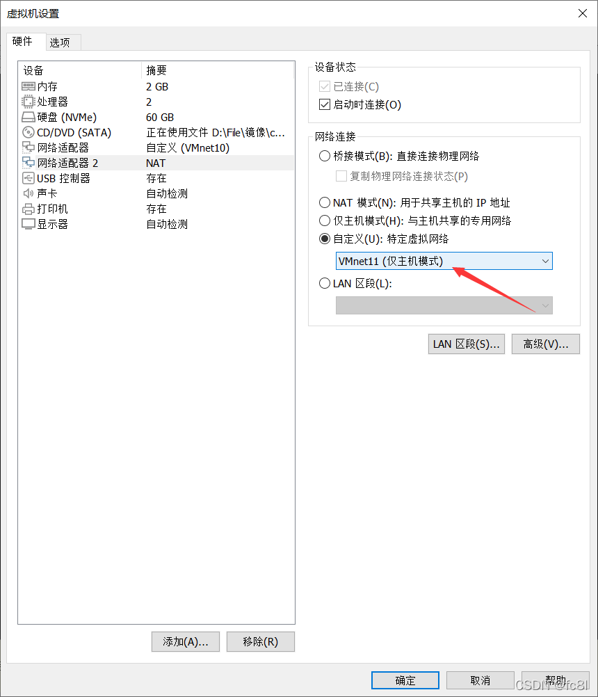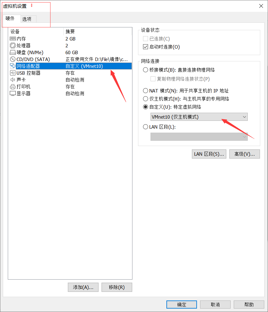 客户端client也是一样将它放到vmnet 10中相同步骤。