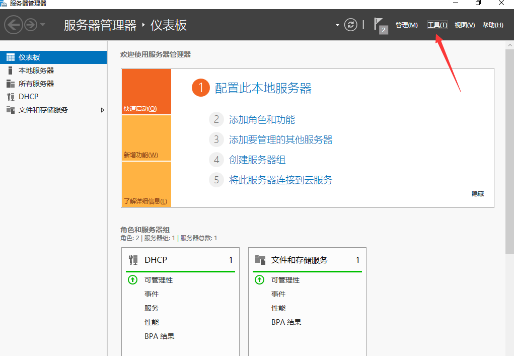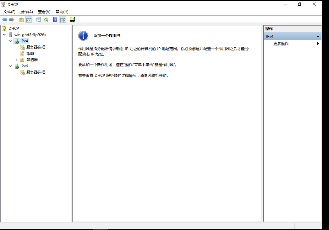在工具里点击DHCP,创建工作域,你必须创建了工作域之后才可以分配IP地址的范围