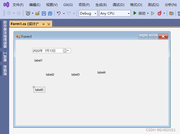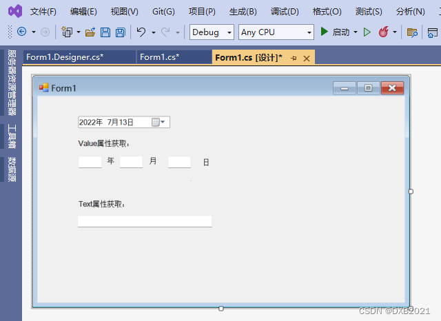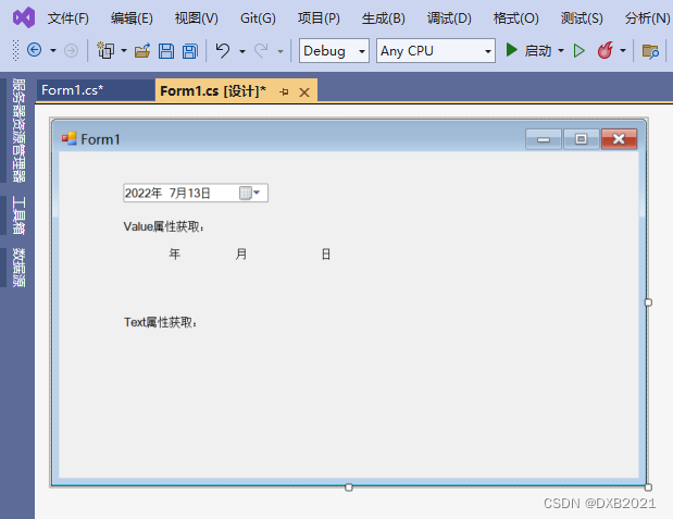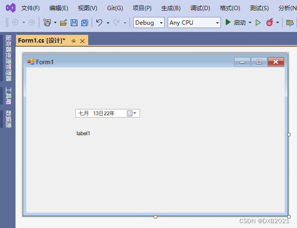在Form1窗体中创建DateTimePicker控件、Label控件和TextBox控件