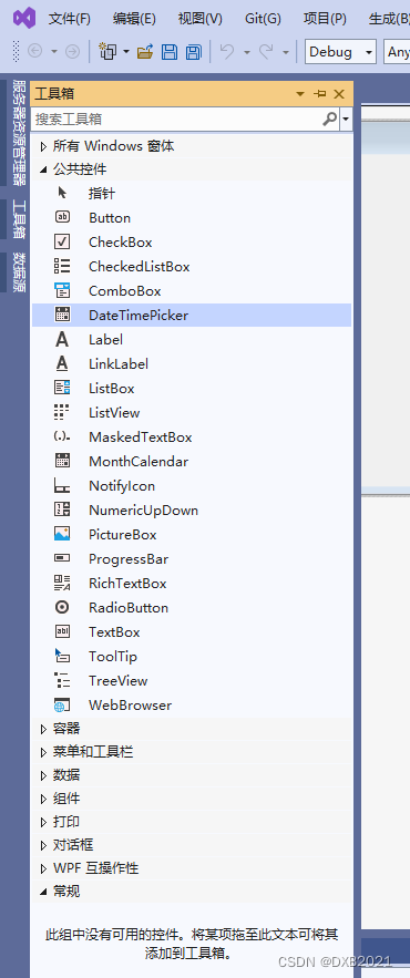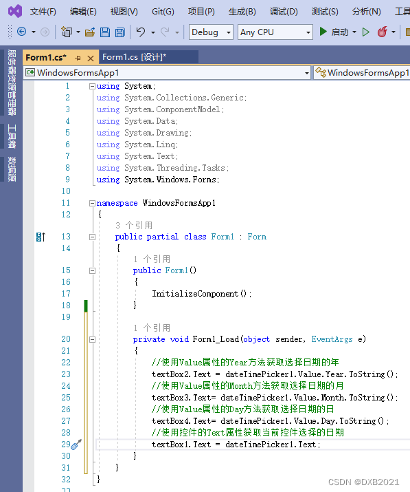 DataTimePicker控件中当前选定的日期和时间由Value属性确定。默认情况下,此控件的Value属性设置为当前日期。如果在代码中更改了此控件的Value属性,则此控件在窗体上自动更新以反映新设置。