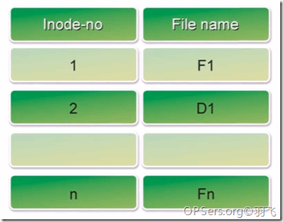 这里有一个重要的内容,就是 Directory,他不是我们通常说的目录,而是一个列表,记录了一个文件 / 目录名称对应的 Inode number。如下图: