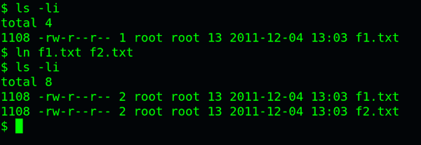 运行上面这条命令以后,源文件与目标文件的 inode 号码相同,都指向同一个 inode。inode 信息中有一项叫做"链接数",记录指向该 inode 的文件名总数,这时就会增加 1。