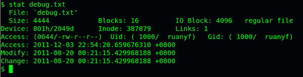 文件的时间戳,共有三个:ctime 指 inode 上一次变动的时间,mtime 指文件内容上一次变动的时间,atime 指文件上一次打开的时间。