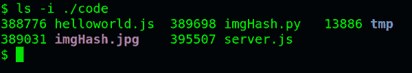 使用ls -i命令,可以看到文件名对应的inode号码: