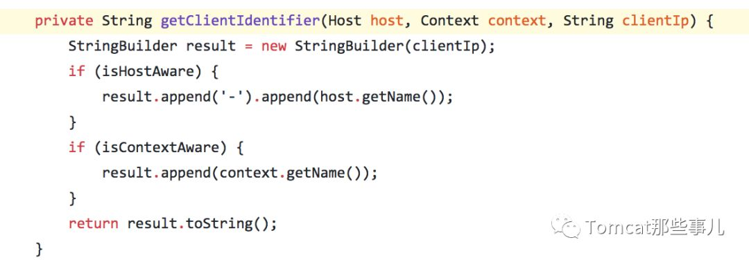 最近 Tomcat 做了个bug fix,原因是这种通过ClientIp的判断方式,当 Valve 配置在Engine下层,给多个Host 共用时,只能有一个Host生效。 fix之后,对于请求除ClientIp外,还有Host和 Context的限制,这些元素共同组成了 client标识,就能更大程度上共用Session。