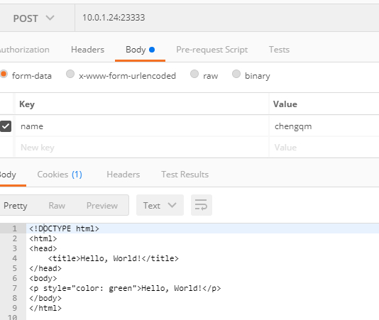 然后就可以手动证明上述说法,比如说要测试 header 和 body 是否分开传输,由于代码没有返回 100 状态码,如果我们 post 请求成功就说明是一起传输的(Chrome/postman)。