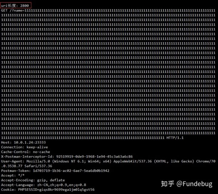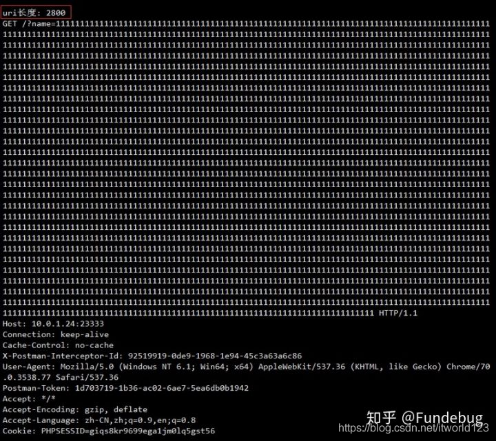 我们用 postman 直接发送超过 2048 个字符的请求看看