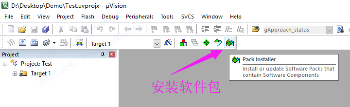 1.打开MDK-ARM软件,点击“软件支持包”按钮