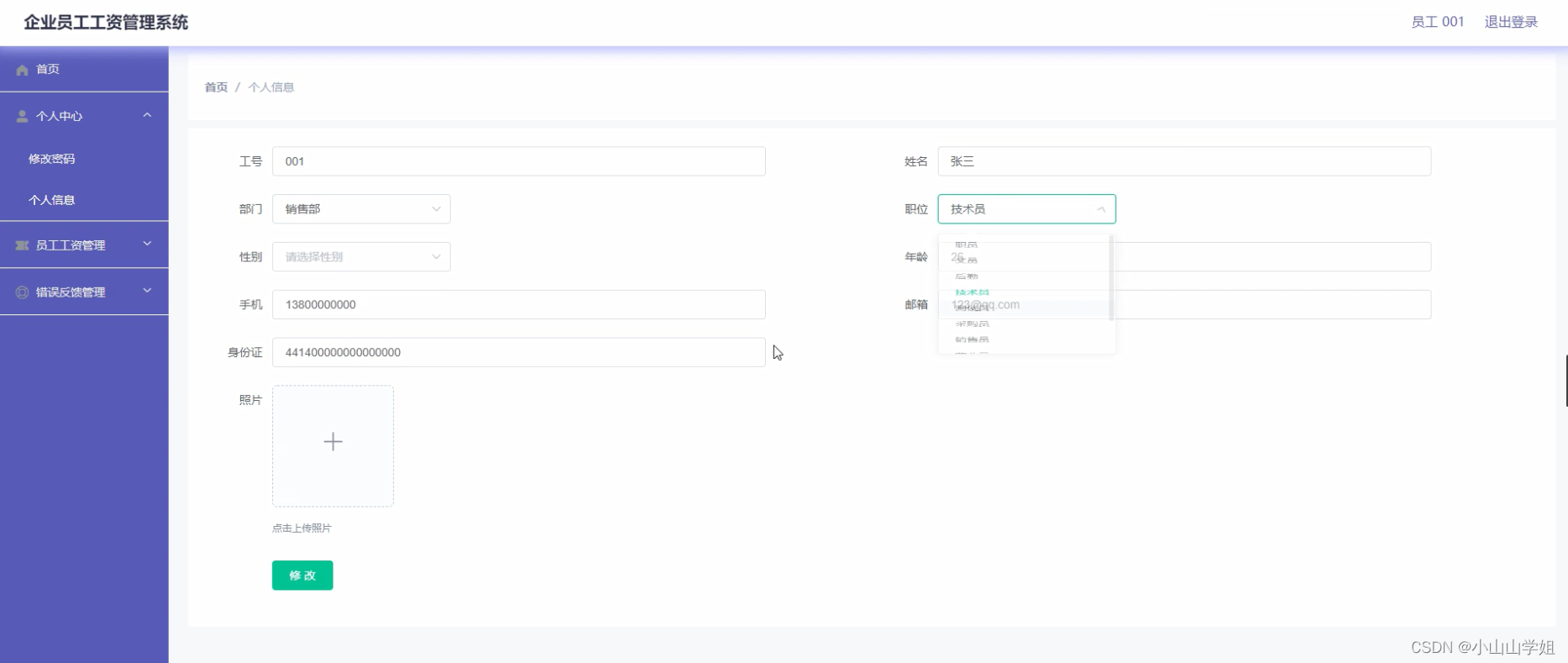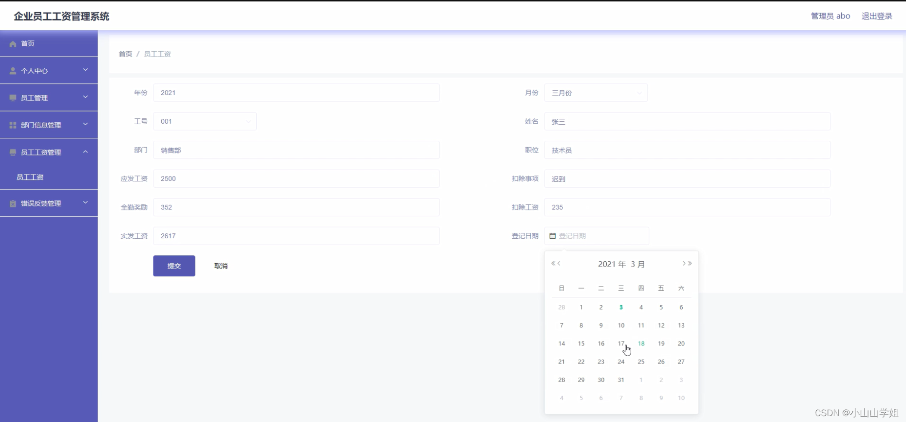 JAVA毕设项目企业员工工资管理系统(java+VUE+Mybatis+Maven+Mysql)