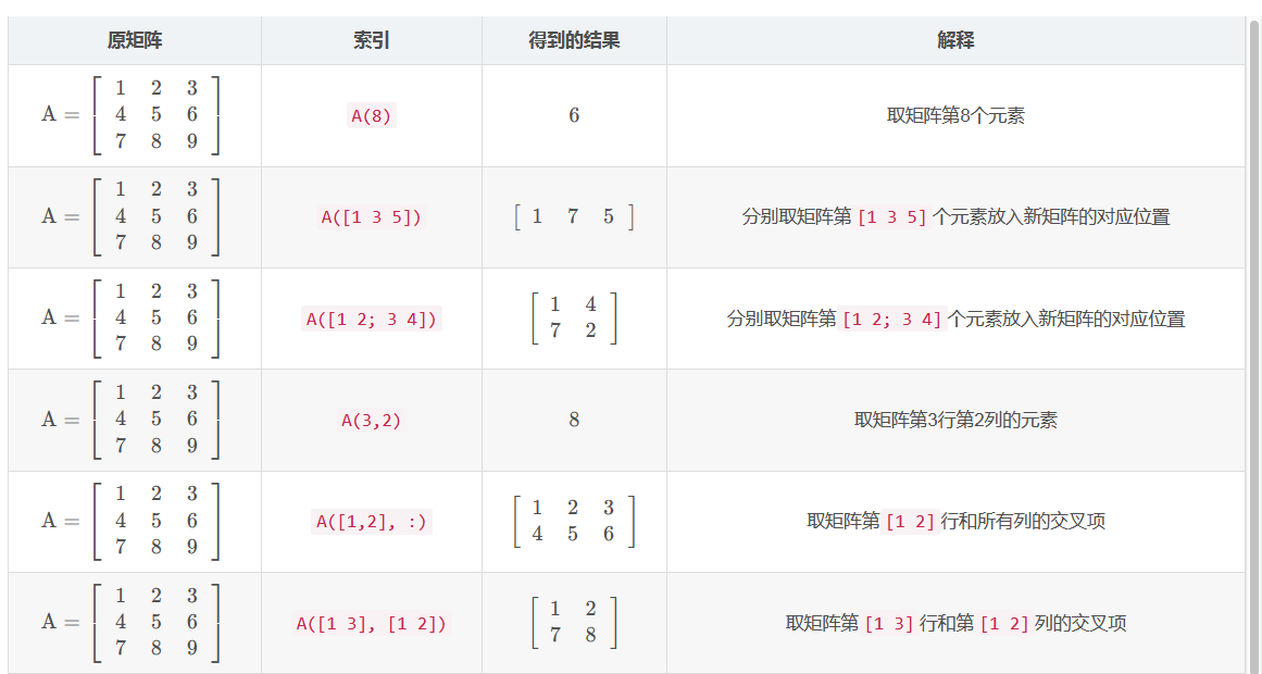 matlab中的矩阵 以列为先序 存储 索引下标起始为1