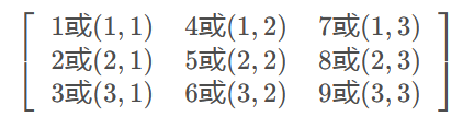 索引有2中方式 按一维索引和二维索引 对于一个一般的矩阵,其索引顺序如下