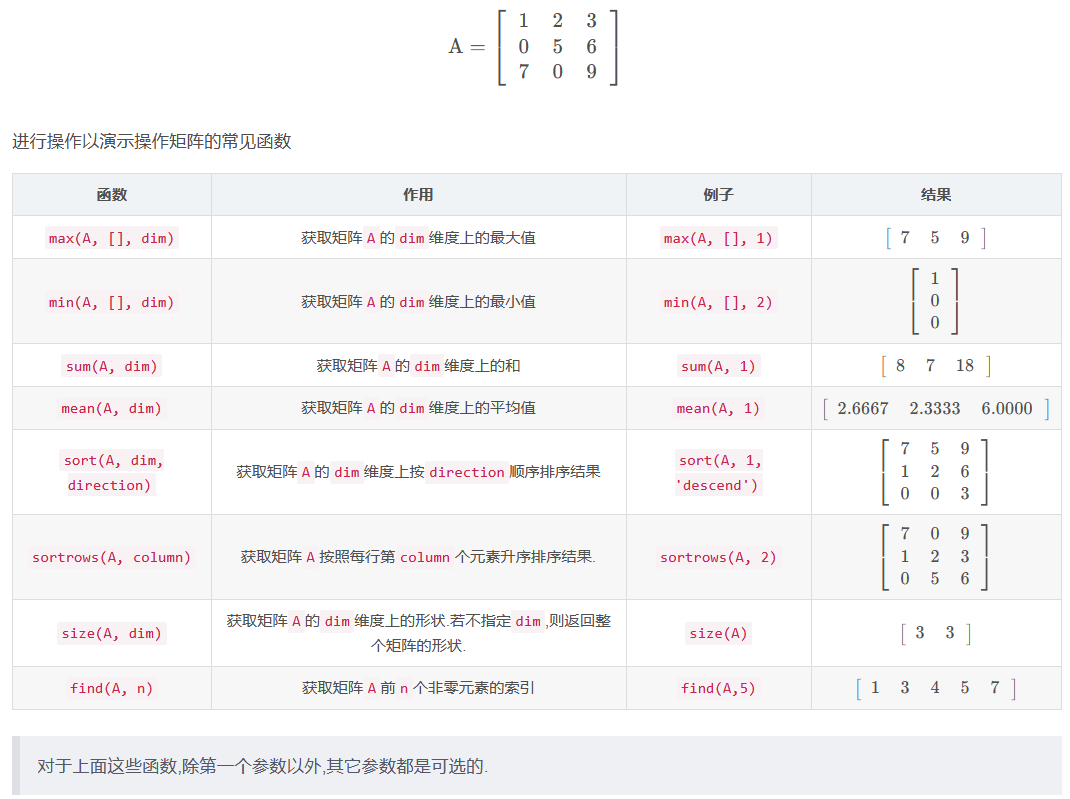 注意上表中 参数提供的方式 A( ) ([ ]) ([ ; ]) ([ , ] , )