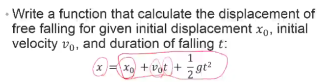 %% user define functionsfunction x = freebody(x0,v0,t)