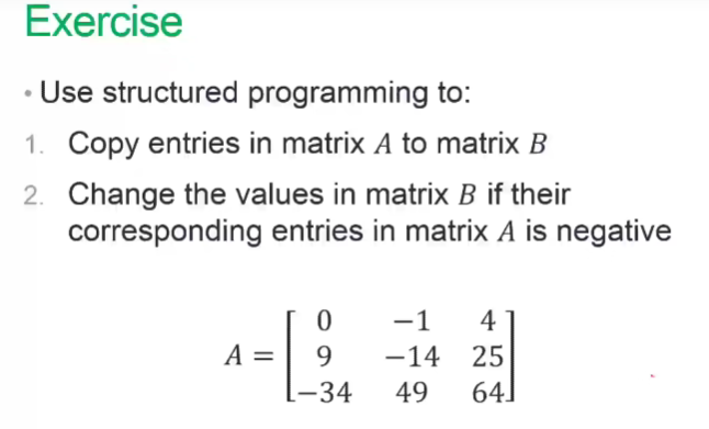 clear all;clc;A = [0 -1 4; 9 -14 25;-34 49 64];