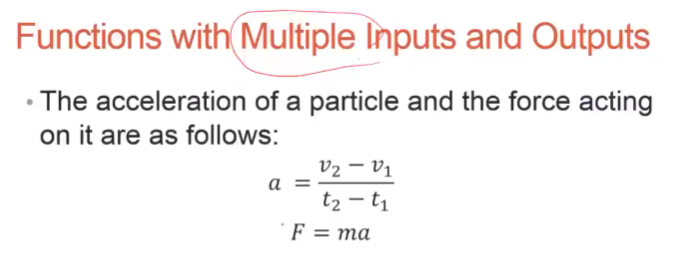 F = m.*a;>> [Acc Force] = acc(20,10,5,4,1)Acc =10 Force =10