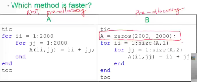 for ii = 1:2000for jj = 1:2000A(ii,jj) = ii + jj;end
