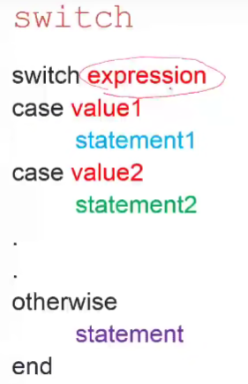 switch input_numcase -1disp('negative 1');case 0disp('zero');case 1disp('positive 1');otherwisedisp('other value');