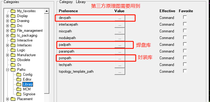 设置库途径: Setup→User Preferences→Paths→library→techpath