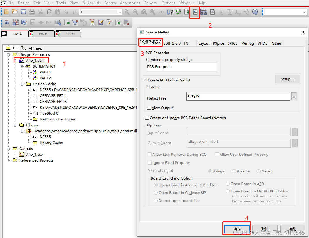 1、原理图 orcad到处网络表。