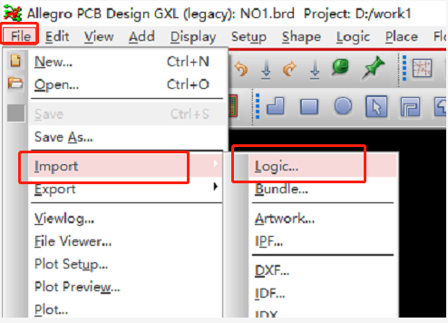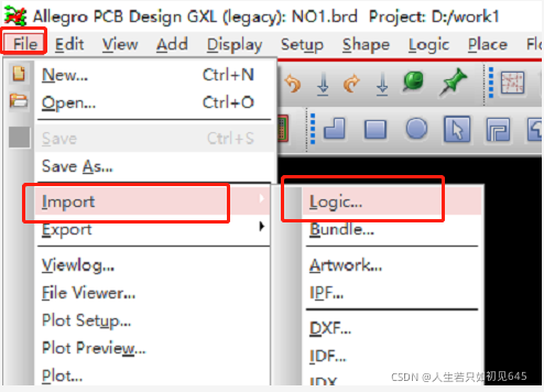 2、 打开Allegro PCB design。File→Import→Logic