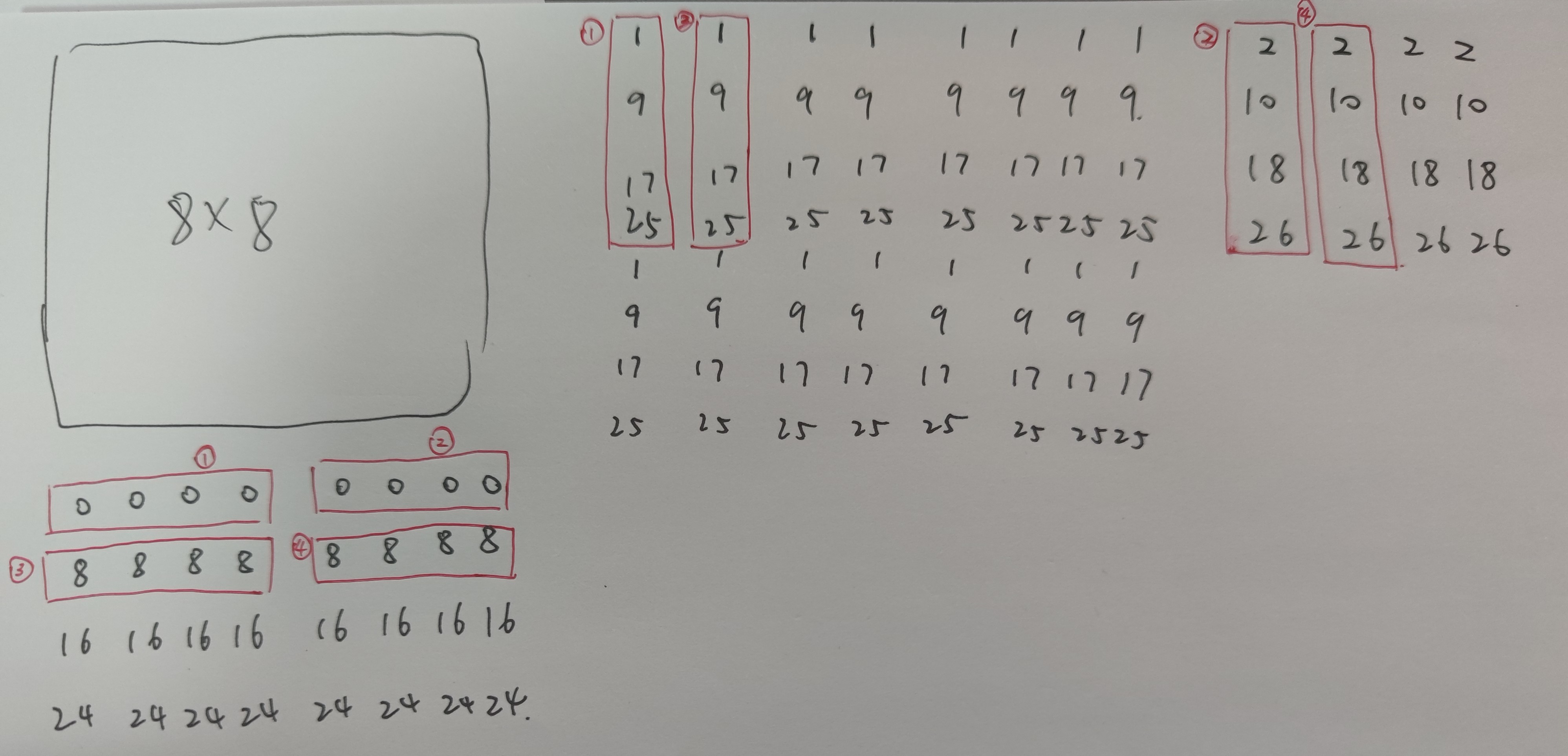 如果还是按照一次按行读8个数据,那么写的时候由于一列中,每4个数据的行号就会重复,所以这8个数据中的后4个所在的行会把前面的行替换掉。