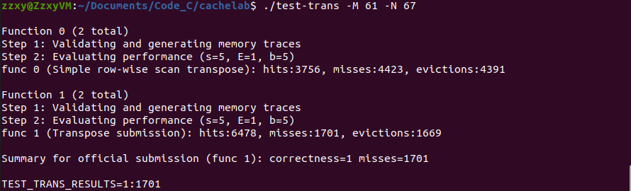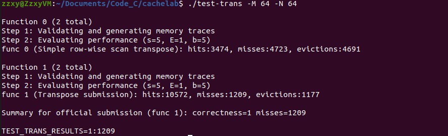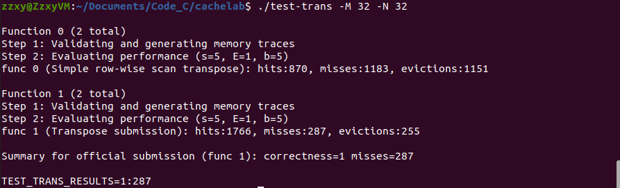 这一部分是需要对一个矩阵转置程序进行优化,使程序执行的miss次数尽可能得少,共有三种规格的矩阵需要进行优化。