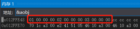 在 Base 类和 A 类中均加入虚函数,查看内存地址如下: