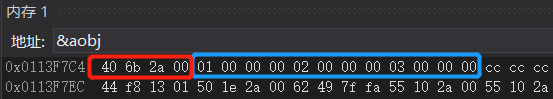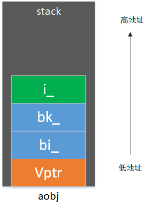 红框部分即为虚函数表指针 vptr,内存布局图如下: