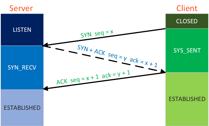 - 防止伪造的 IP 和 Port 向 Server 不断地进行连接。因为上述情况若是两次握手,就直接导致了 Server 为了建立这些连接而浪费大量资源。若是三次握手,就可以向上述的 IP 和 Port 发送确认的包含 ACK 和 Seq 包,并等待正确地回复。这就有效的避免伪造的 IP 和 Port 对 Server 的攻击,其实也就是验证该 SYN 的有效性。
