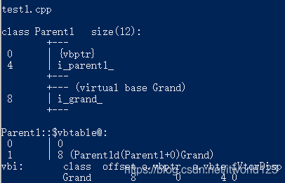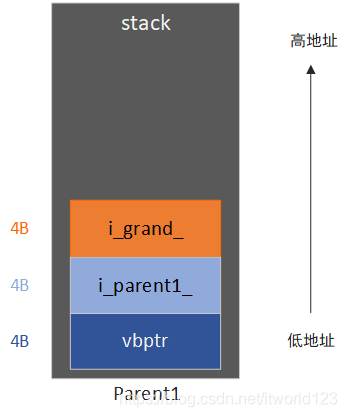 根据上图得到下图所示的 Parent1 类的内存布局。