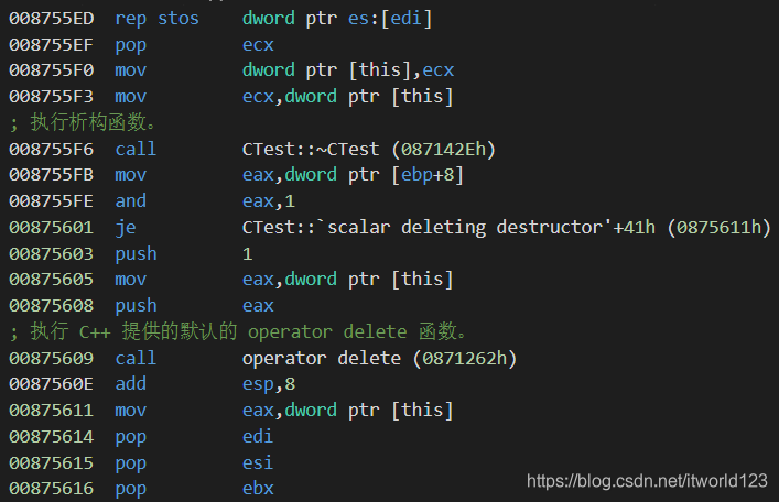 (2)执行对象的析构函数(倘若有)。