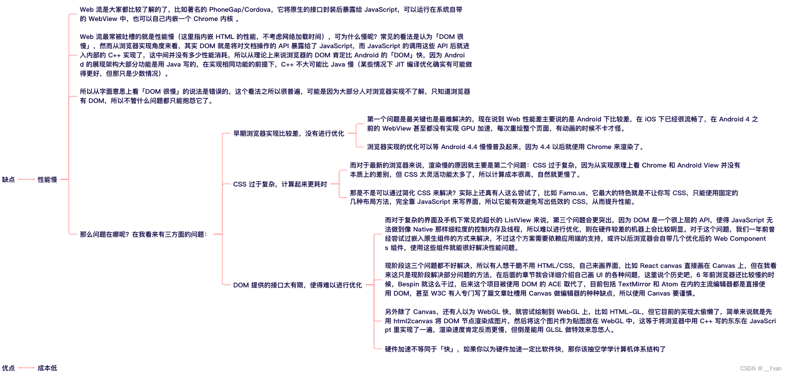 Web 渲染方案的致命弱点在于无法出色地完成高性能和体验的目标,但是其良好的社区生态、跨平台一致性和高研发效率都是其无法忽视的优势,那么如何做到二者的平衡,答案就是原生渲染方案。