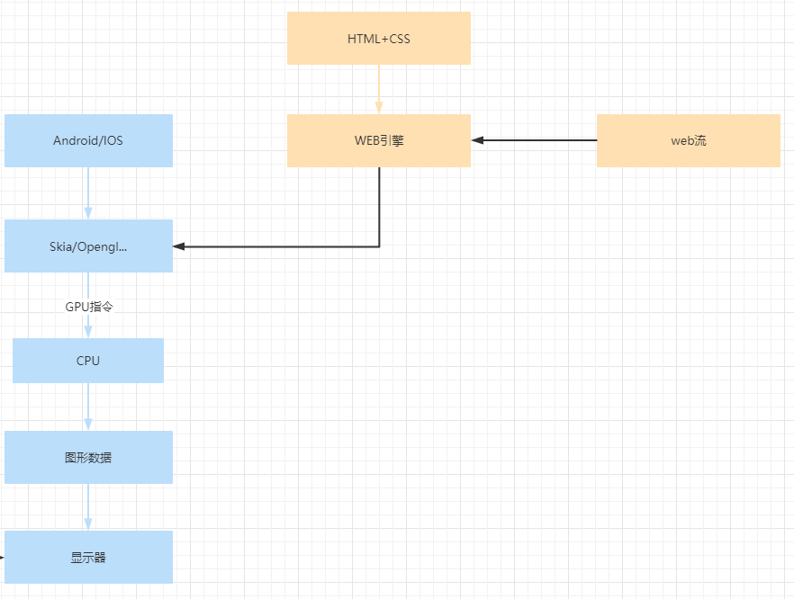 依托于web引擎的渲染来实现UI,底层需要的是一个web引擎来实现。主要依赖于浏览器引擎相关实现,规范按照HTML+CSS,运行载体是浏览器。