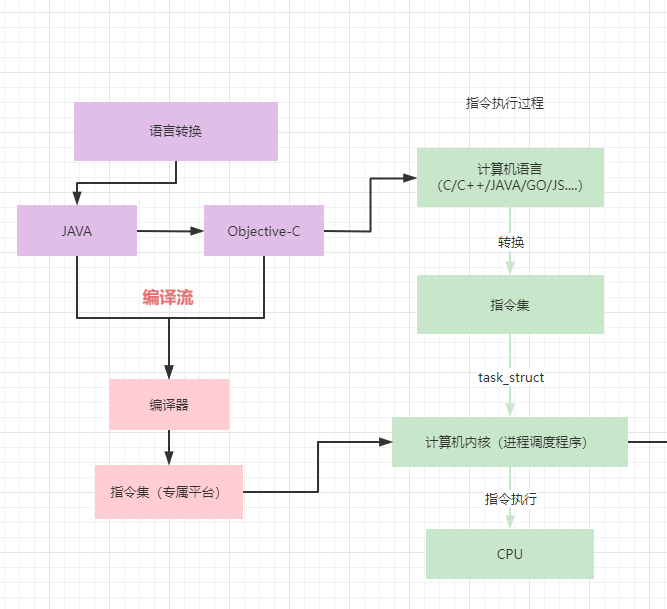 语言的跨平台实际上就是适配CPU指令集,确保你的代码能在硬件上执行