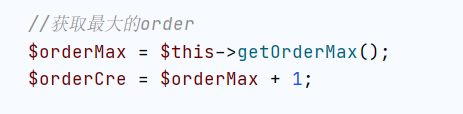 //获取最大的order$orderMax = $this->getOrderMax();$orderCre = $orderMax + 1;