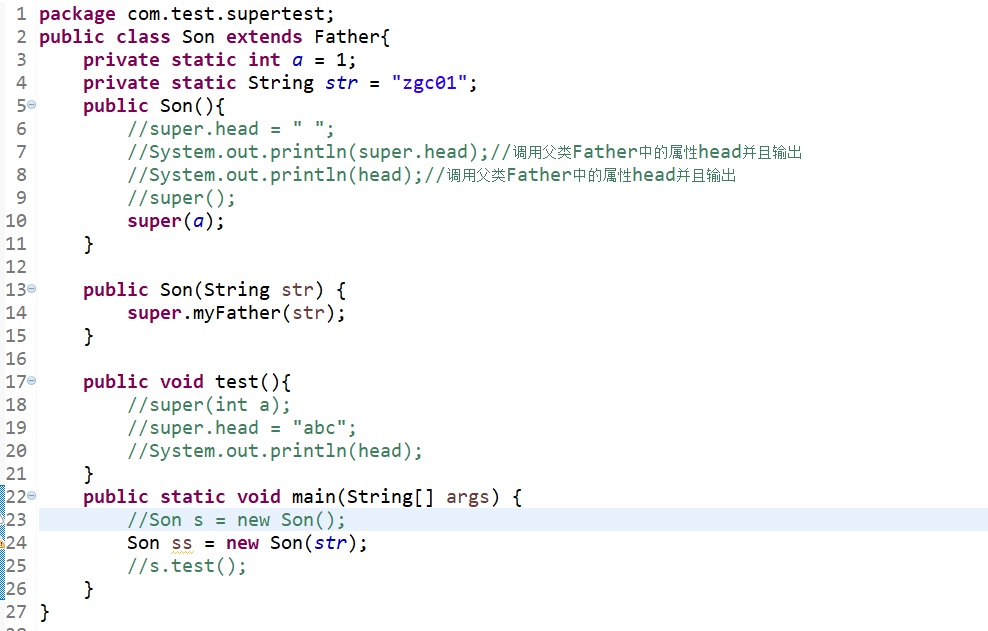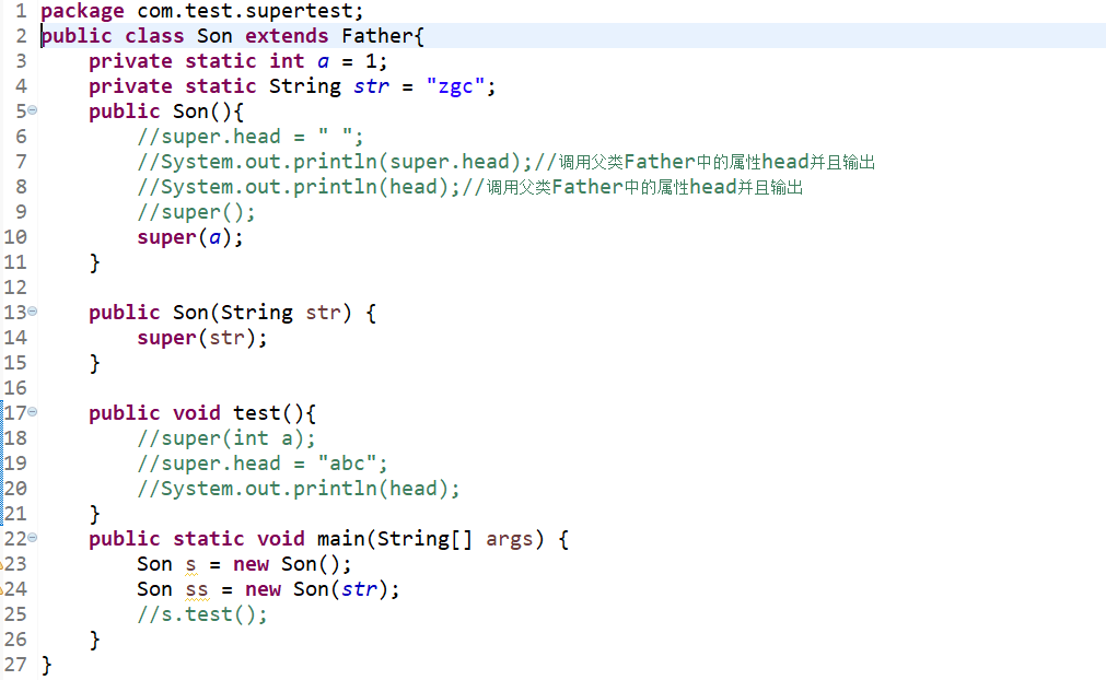 可见super( )和super(str)分别调用了父类的Father( )和Father( String str )两个构造方法