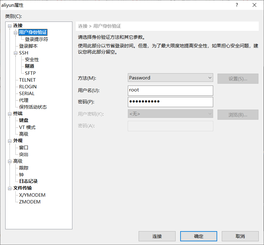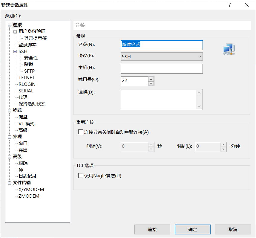 名称任意,协议SSH,主机就是购买服务器实例中的共有地址(第二张图中),端口默认22