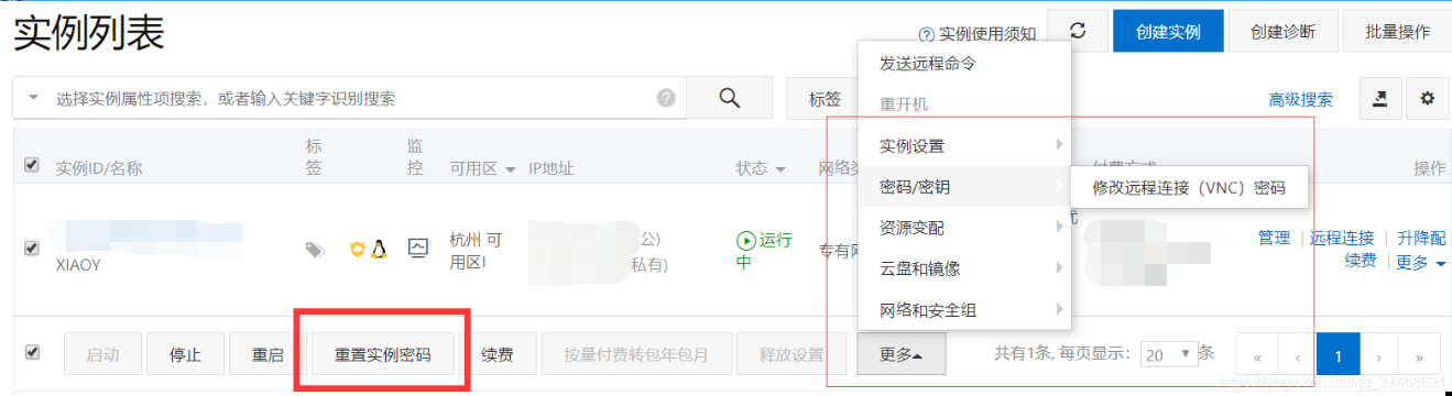 如下图,用户名root,密码是实例密码,并不是远程连接密码(下图中粗红线框那个)