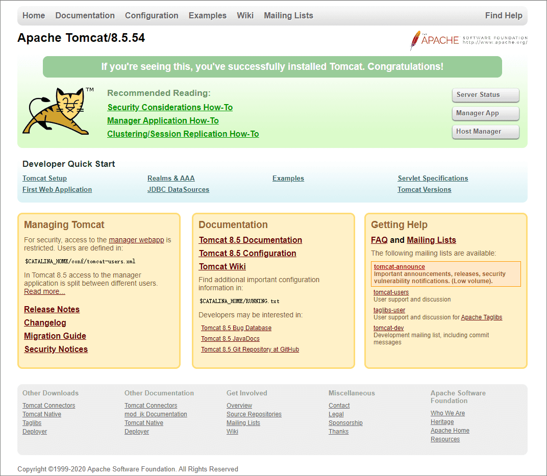 如果显示如下界面,则表示Tomcat安装配置成功。