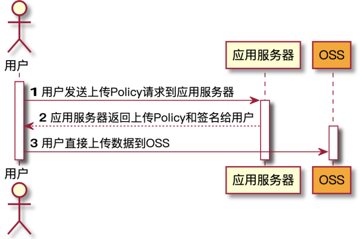 a. 采用JavaScript客户端直接签名时,AccessKey ID和AcessKey Secret会暴露在前端页面,因此存在严重的安全隐患。因此,OSS提供了服务端签名后直传的方案。