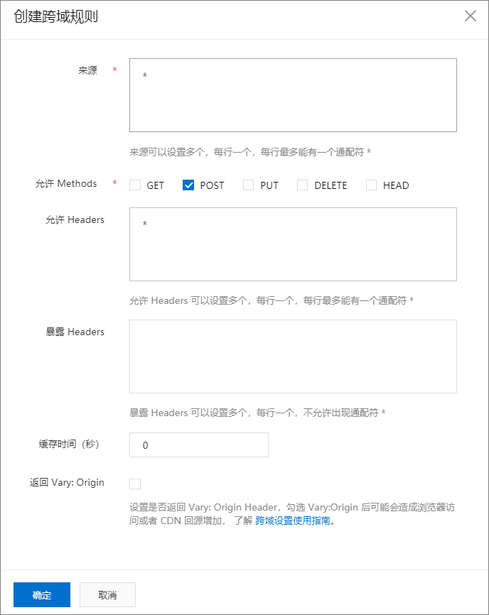 - 单击权限管理 > 跨域设置,在跨域设置区域单击设置。