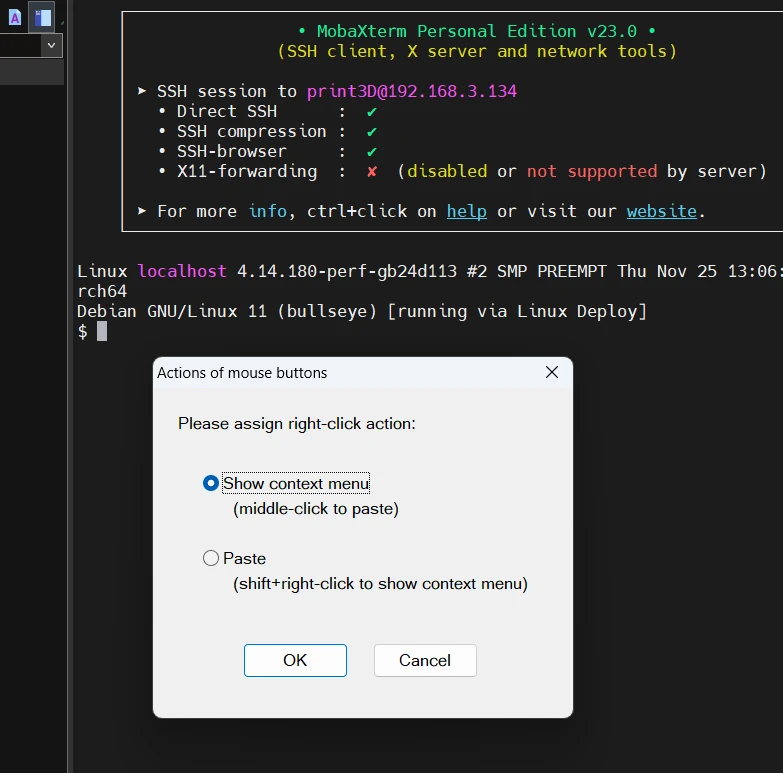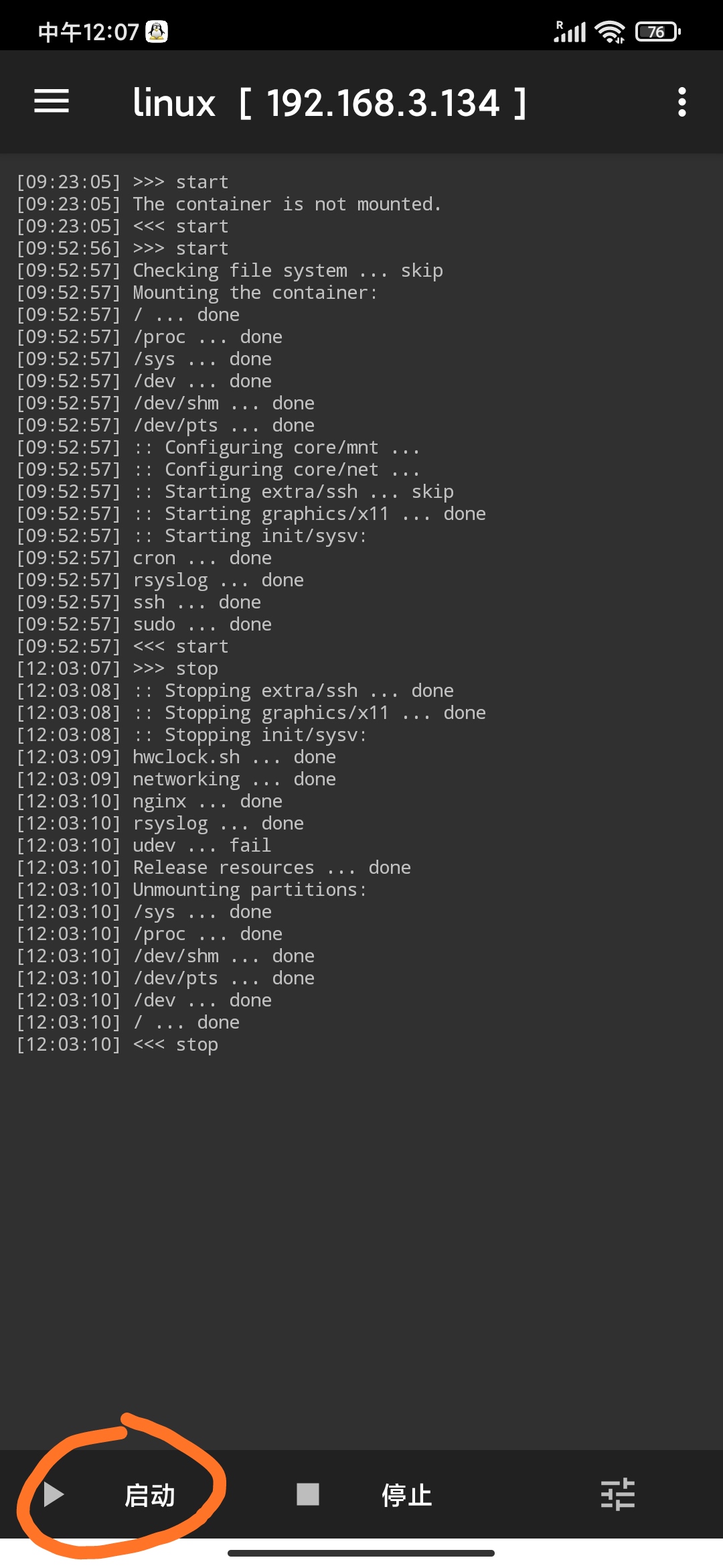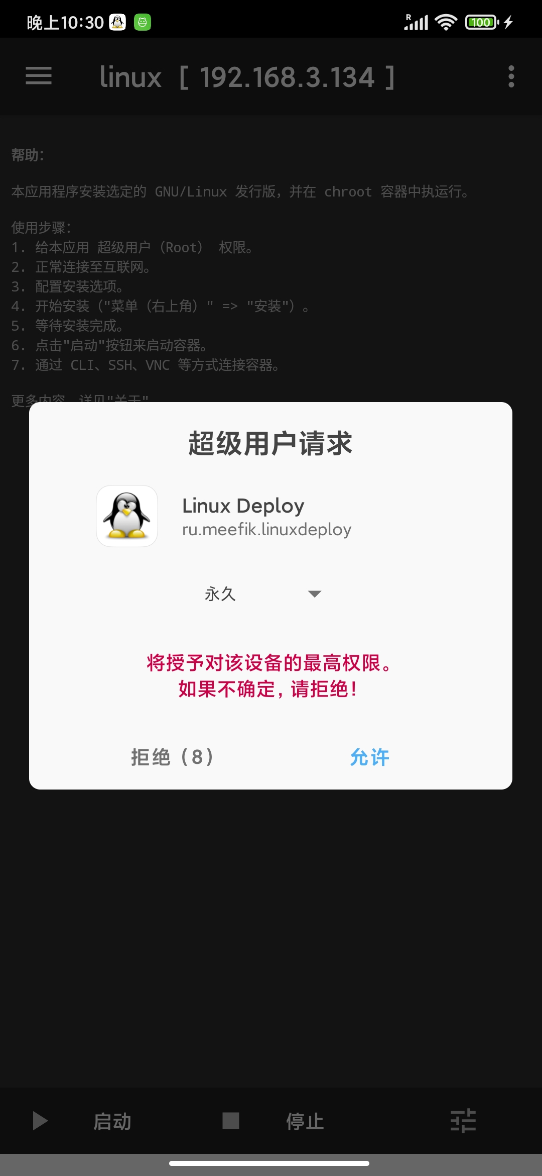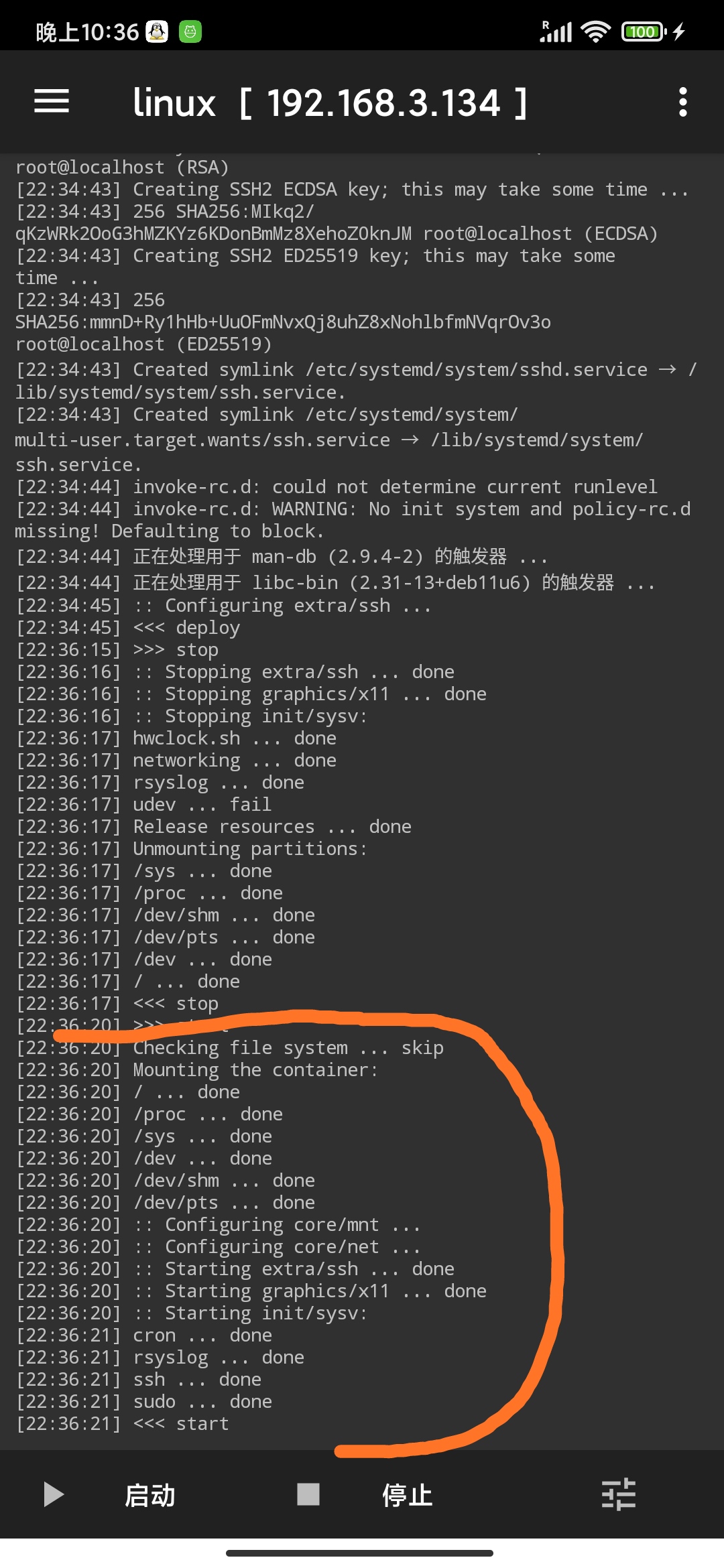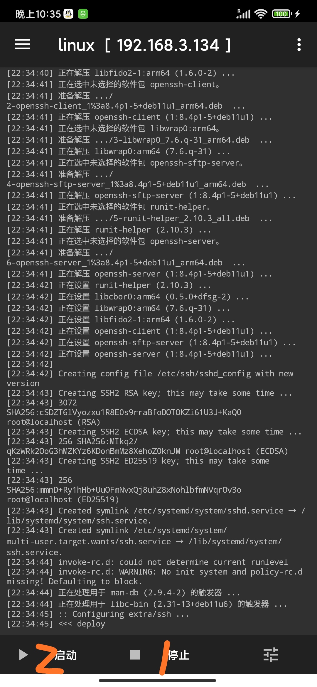 如果出现这种情况或者报错,请关闭下位机主板电源,停止Linux deploy,等几秒后重新上电连接手机,打开Linux deploy点击启动