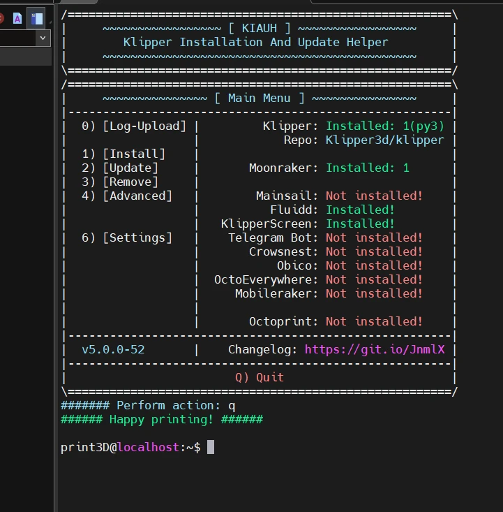 kiauh安装klipper这里就不赘述了,不会的就选择上面大佬的视频跟着做。