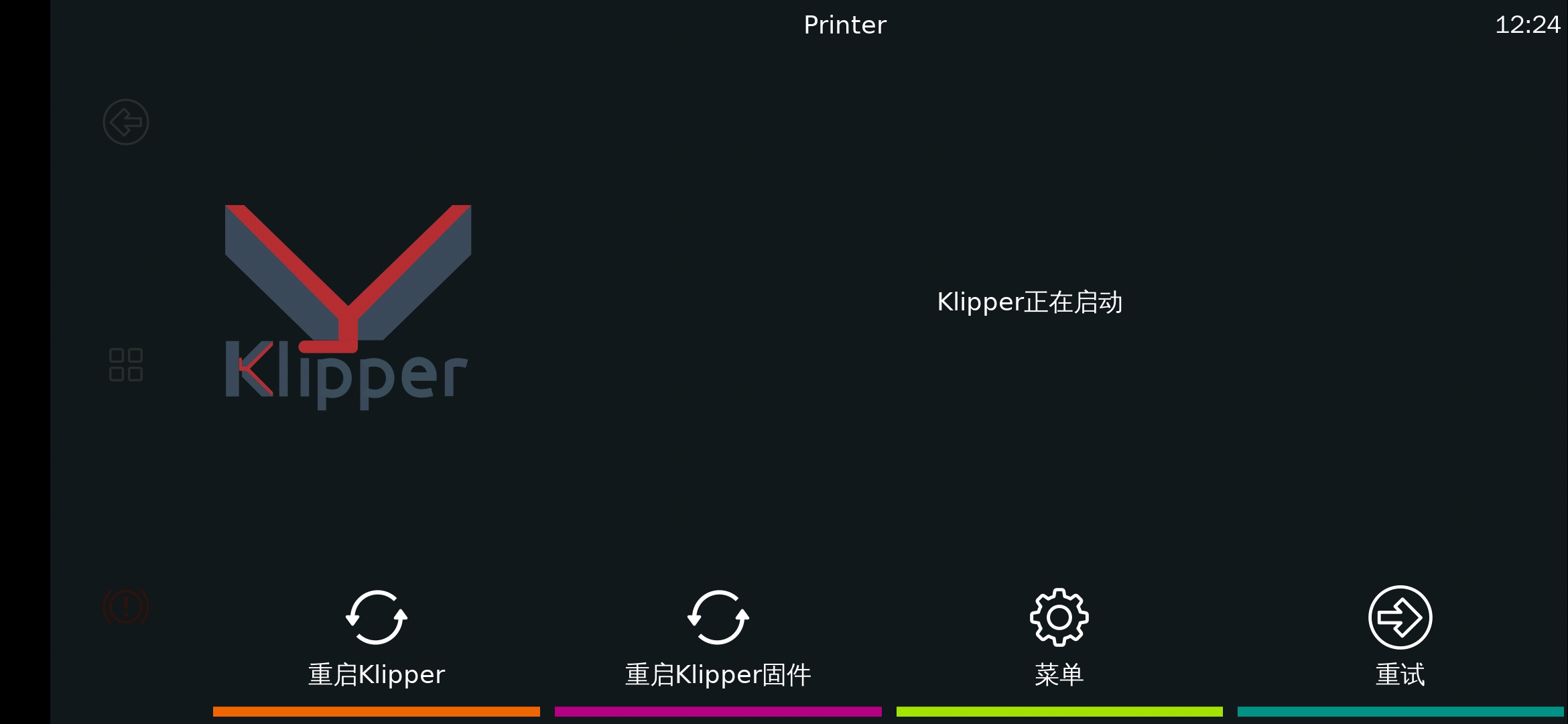 执行完毕后重启手机,没有问题的话klipper全家桶和XServer-XSDL会自动启动并连接到打印机,屏幕上会显示KlipperScreen经典界面。